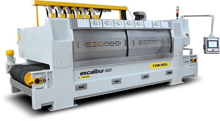 Requested measurements at the beginning of the shift are stated with their quantities through the Excalibur® touchscreen. It automatically conducts the cutting business, deciding which modules it shall work on, considering five different stone measurements and quantities. In the precision cutting module, the heads' precision cutting system processes free-length raw material dimensions through a precision cutting operation in a single measurement standard.